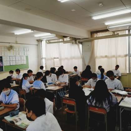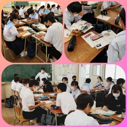 テスト範囲は既に指導済み。今日の授業では、先の内容を事前に班単位で調べます。