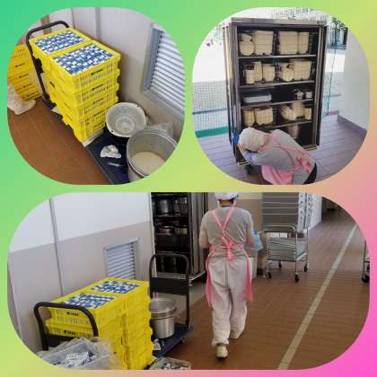学校給食は毎日が、野菜豊富で炒め物、煮物等で提供しています。