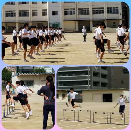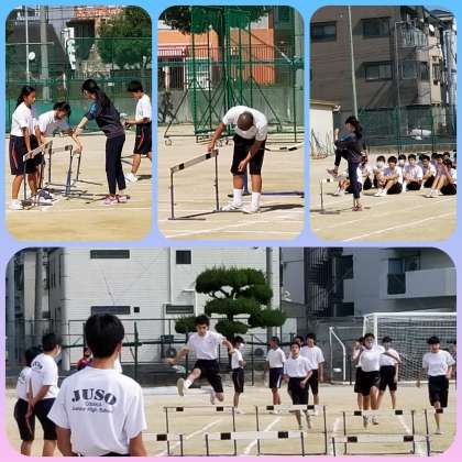 コースにハードルを配置していく際にも生徒に声をかけ、高さ調整や安全面に注意を与えます。