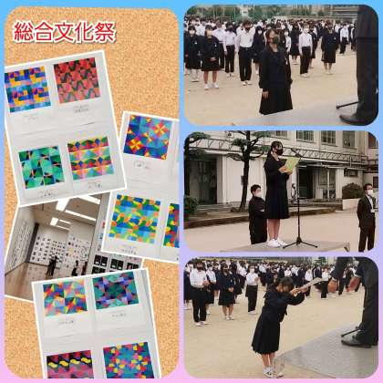 総合文化祭では、文化の秋に相応しい32点を出展しての表彰です。代表生徒に賞状を伝達しました。