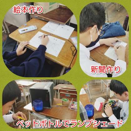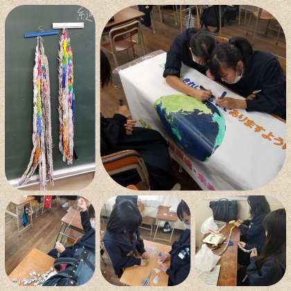 放課後、二年生の教室では文化発表会に向けて学年展示作品を作成しています。