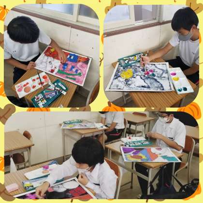 美術室では、授業での作品の仕上げに掛かっている生徒と美術部の作品づくりが行われていました。