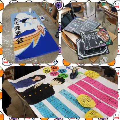 学校全体の平面図作成、各展示場所の表示板、立て看板などを手掛けていました。