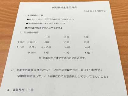 前期最終生活委員会の様子です。