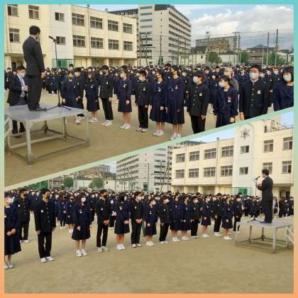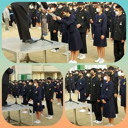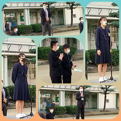 前期生徒会長が前期の役員を代表してお礼と後期の役員への期待を込めた挨拶がありました。また、後期を代表し新会長からも挨拶がありました。