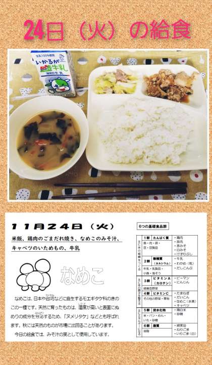 ごはんが進むおかず、鶏肉のごまだれ焼き。給食では、いりごまをまぶす程度ですが、これでも本当に美味しいですね。