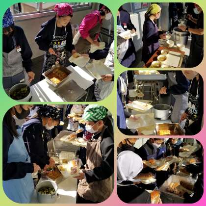 一年生校舎には暖かな日差しがあり、生徒の表情も穏やかで、笑顔いっぱい手際よく準備していました。