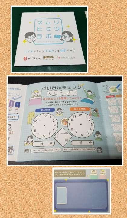 『ネムリノヒミツラボ』、こどもの『いいネムリ』を科学するを配付しました。今後の生活にご活用ください。