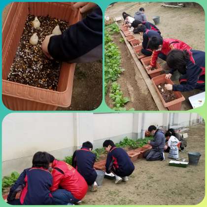 寒い冬を乗り越え、赤・白・黄色と咲き誇る姿を見るのが楽しみです。