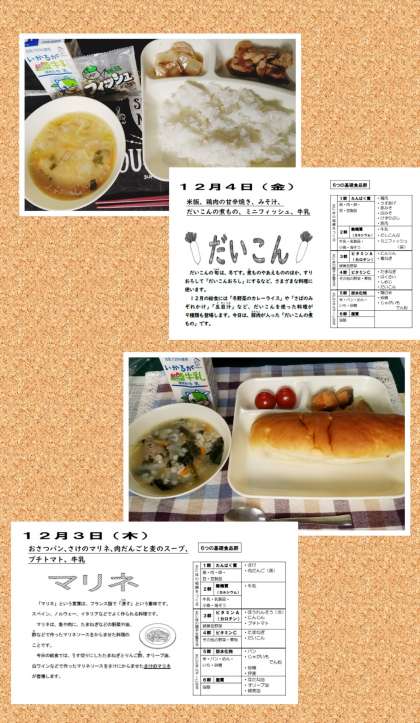 12月の給食には、大根を使った料理が9種類も出るようです。お楽しみに