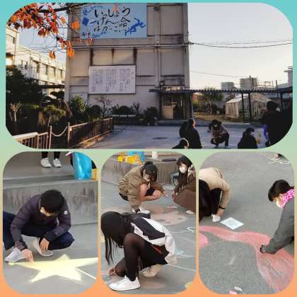 それぞれが各パートを手掛け、生徒が登校する時間帯には大きな絵となってつながりを見せます。