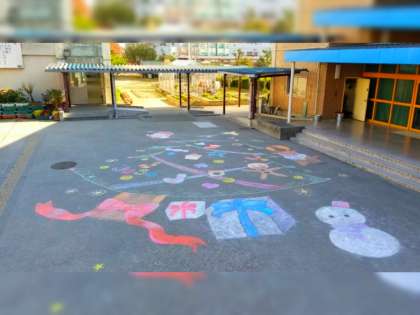土曜の朝、土曜授業の三年生をサンタさんが歓迎してくれました。