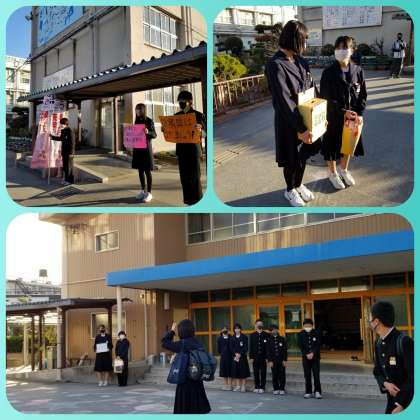 『あいさつ運動』『赤い羽根共同募金』最終日でした。