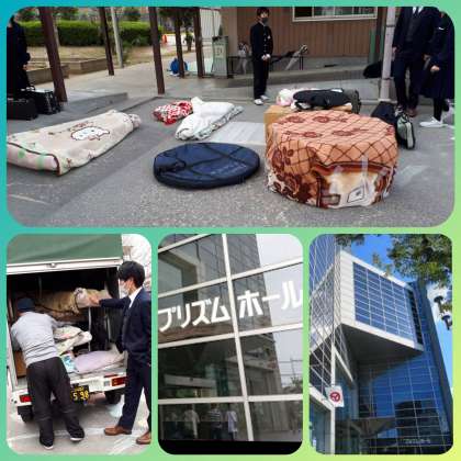 吹奏楽部は八尾市文化会館プリズムホールでアンサンブルコンテストに臨みました。楽器をトラックに積み込んで出発準備する部員たちです。