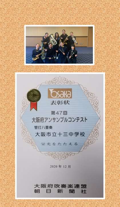 十三吹奏楽部も管打8重奏の部に参加し、見事『金賞』を受賞しました。