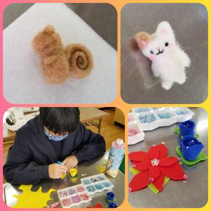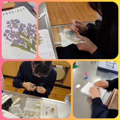放課後、家庭科部の活動では個々にアクセサリーなどの作品作り没頭していました。