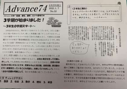 心身共にスムーズに3年生に進級できるよう、自覚と責任を持って行動するすること。
