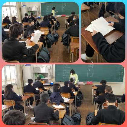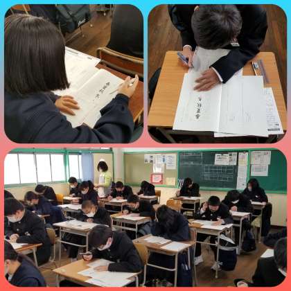 1年生の教室、国語のテストが行わてれいました。