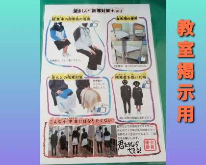 生徒指導主事からは、教室な換気に伴う授業中の防寒着の着用についてのお知らせがありました。