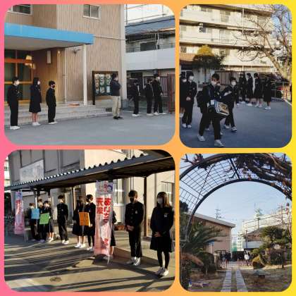 三組寒さに負けずあいさつ運動