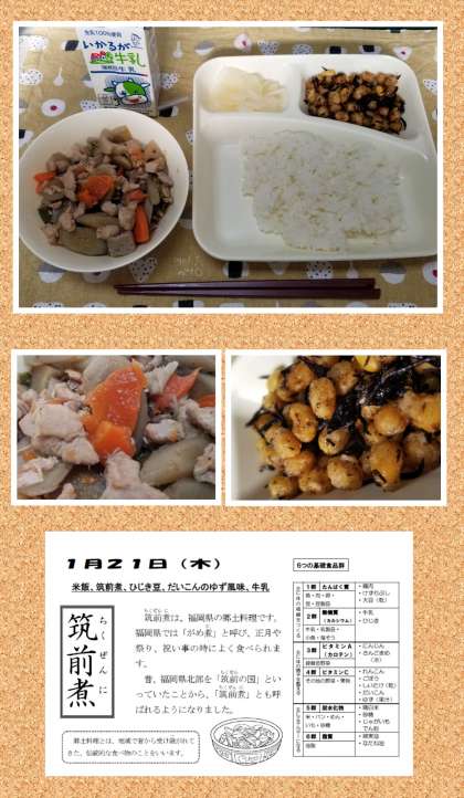福岡の郷土料理、筑前煮で栄養をたっぷり取ります。