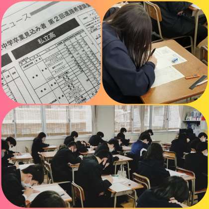 数学のテストに臨む三年生、素晴らしい集中力を見せています。