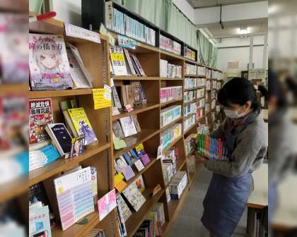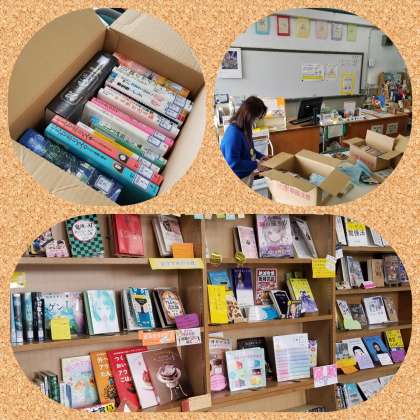 図書室では、朝から新書の入荷があり、段ボール箱から次々と書庫に収められていました。