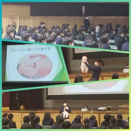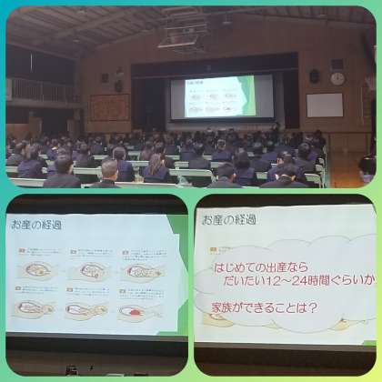 一年生では性教育の取り組みとして、大阪府の助産師会から講師をお招きし、生命誕生や命の大切さ等についての講話がありました。