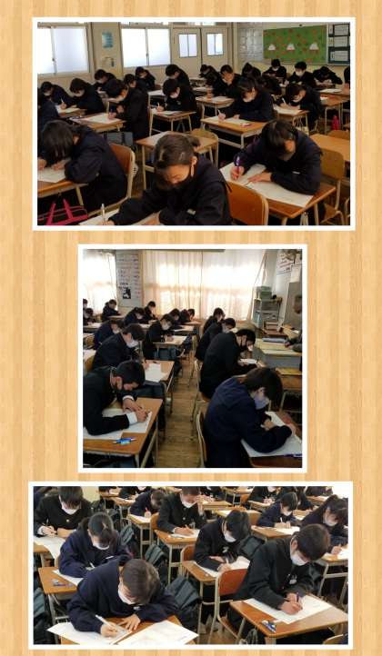 二年生理科テスト、解答用紙にすらすらと答えを書き埋めていきます。よく学習できているようですね。