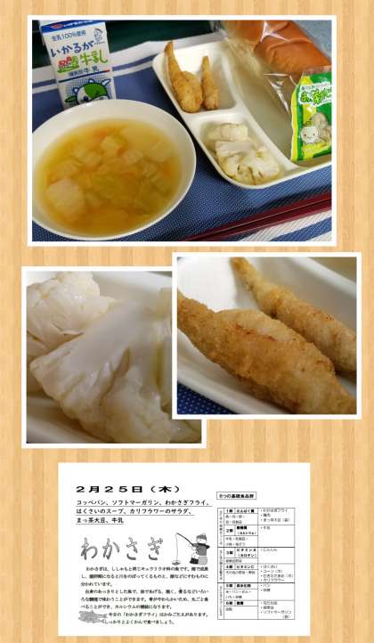 2月25日(木)は、わかさぎフライです。わかさぎは一年中取れますが、日本の冬の風物詩としての「氷上の穴釣り」のイメージが強いですね。