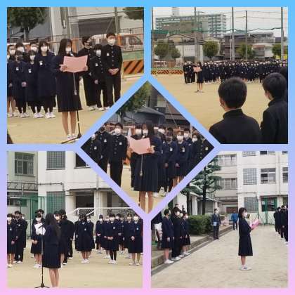 在校生の皆さんは学年が一つ上がり、プレッシャーを感じる場面もあるかもしれません。そんなときでも支えてくださる先生方や仲間が絶対にいます。私たちが卒業しても共に支え合い、協力しながら充実した中学校生活を送ってください。そして、皆さんの力でこの十三中学校が今よりも素晴らしい、より良い中学校になることを期待しています。