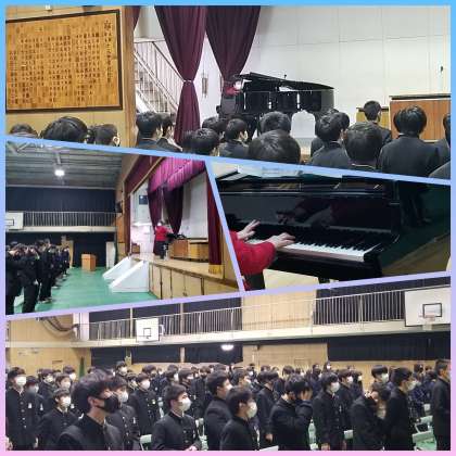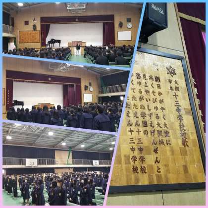 緊張感に包まれた静寂した式場、開式の言葉に続いて、国歌・市歌・校歌と歌が続きます。