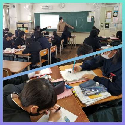 直定規を使い丁寧に展開図を書いていました。みんな、積極的に手を上げ回答します。決して苦手には見えないですね。