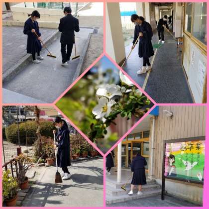 一年生は、正門から玄関、本館等にかけて掃き掃除を丁寧に行います。