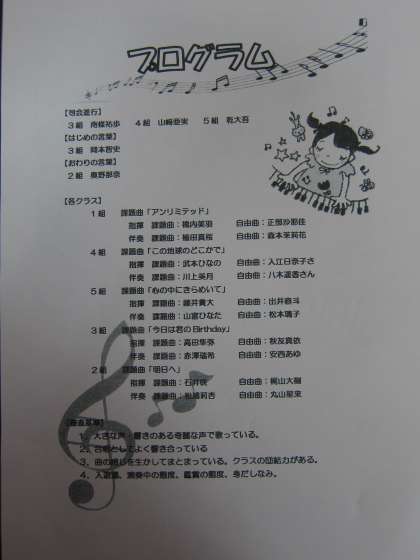 各クラスが課題曲と自由曲を歌います。