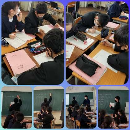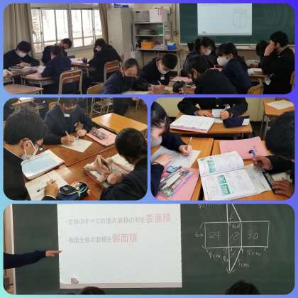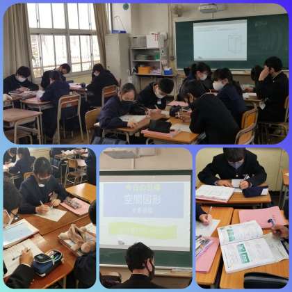 学力向上推進事業、1年生5組でも『空間図形』について学んでいます。
