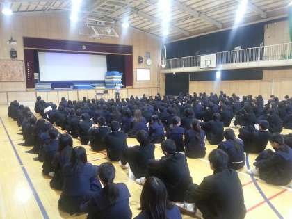 昨日の6限目に体育館にて『進路学習』を行いました。