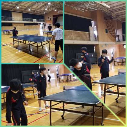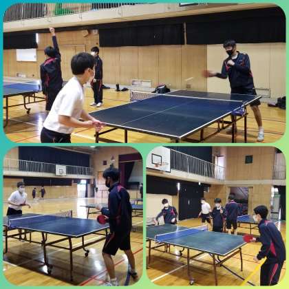 体育館で卓球部が楽しく練習に励んでいました。