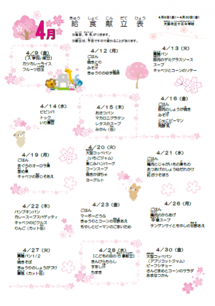 係の生徒は、エプロン・三角巾・マスクが必要です。
