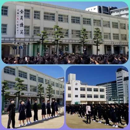 8時25分、ほぼ全生徒が登校し整列完了しています。