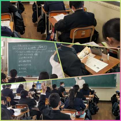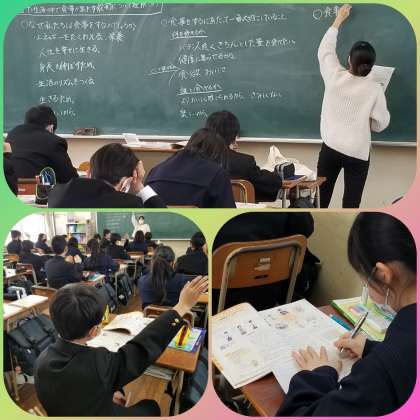 毎日欠かすことのできない食事について考えます。身近なことだけにみんな積極的に手を挙げ答えます。