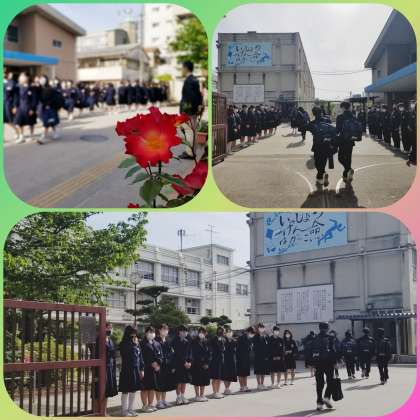 生活委員会による挨拶運動の最終日、校門の外からでも聞こえる大きな声に、通行人も元気づけられます。