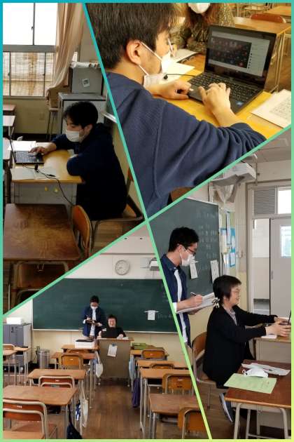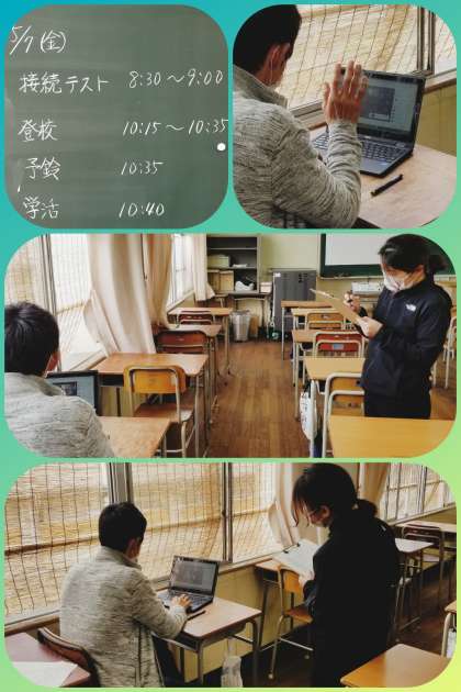 昨日は1.3年生の接続確認、今朝は2年生の接続確認。今回接続ができなかった生徒については、本日の15時30分から第二回オンライン接続テストを行います。