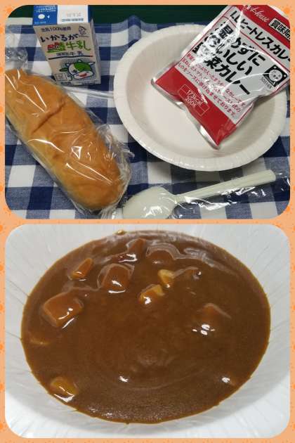 十三小学校の休校にともない、本日の給食は『ヒートレスカレー』となりました。