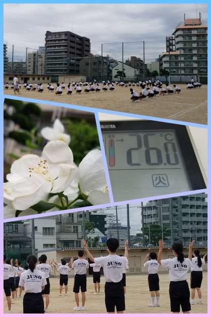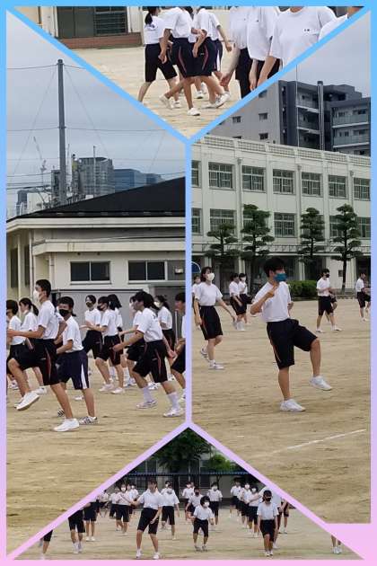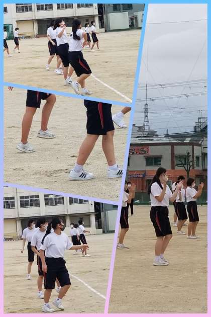 梅雨の合間、三年生体育授業では体育大会の学年練習に取り組んでいます。