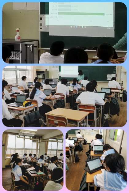 二年生、理科の授業ではタブレット活用し地震について学んでいました。