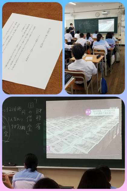 国語では時事資料から、財務省『国の借金』について、調べること・ 考えることの 大切さを学んでいました。