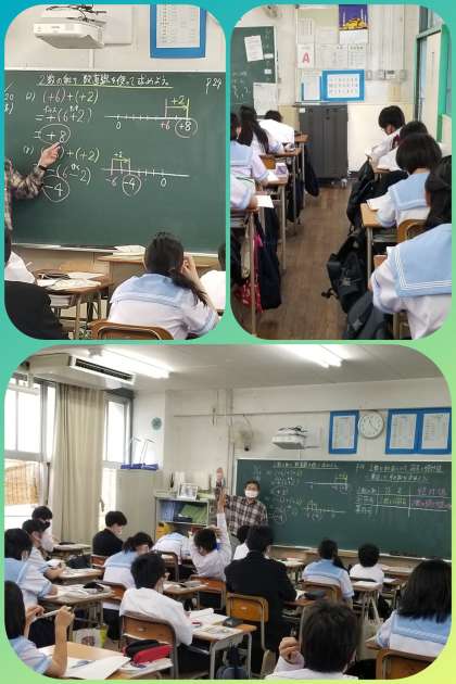 一年生数学、今日の目標は、『2数の加法について、符号と絶対値に着目してその和を求めよう』を学習しています。