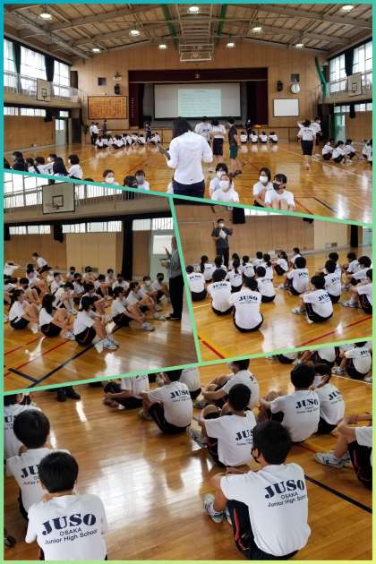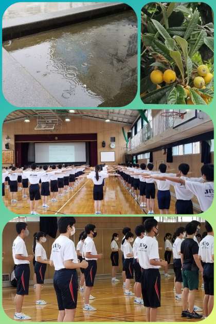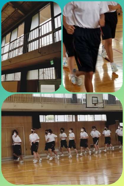 大きく窓が開放された体育館、二年生が体育大会練習を行いました。