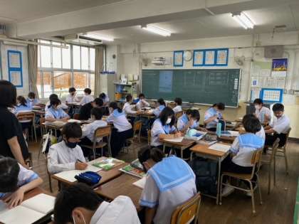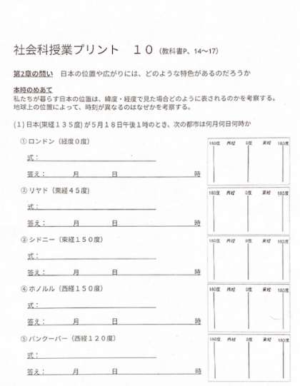 1年生 社会科では、ワークシートを使った時差の計算を学習しています。?